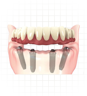 Also known as Implant retained overdenture or palateless snap on denture.