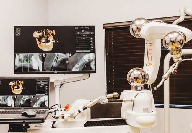 With Blossom Dental's Yomi Robot-Assisted Dental Implants, our state-of-the-art robotic technology ensures accuracy, guaranteeing precise implant placement for enduring and aesthetically pleasing results. Yomi integrates with our dental professionals' expertise, allowing them to plan and execute implant procedures with exceptional precision. Choosing Yomi means elevating your smile to new heights, leading to a more confident and fulfilling life.